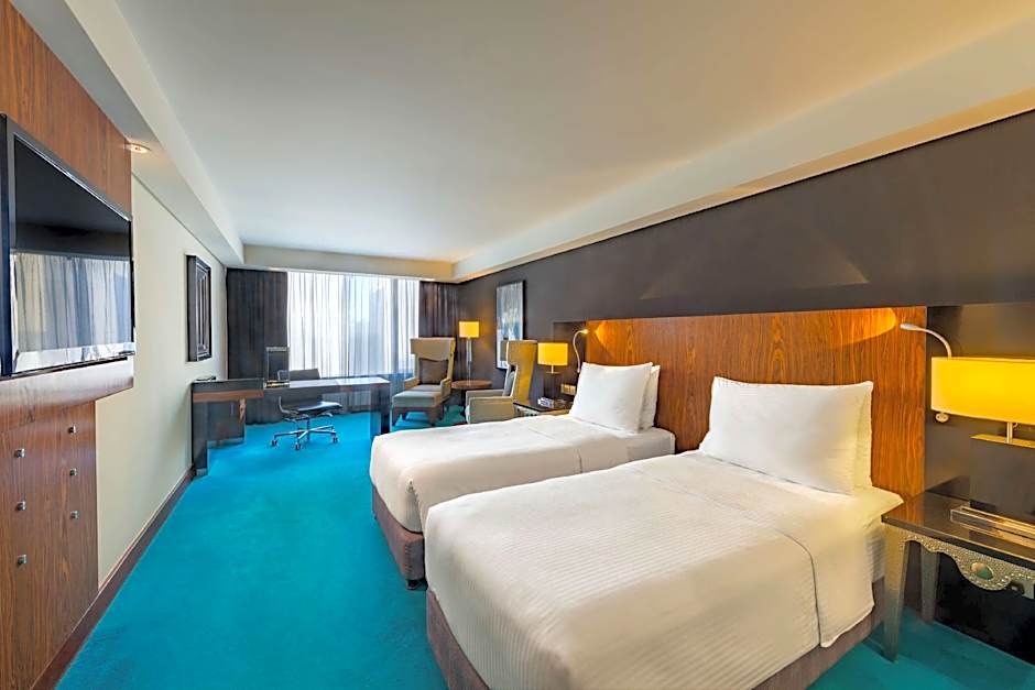 This air-conditioned suite offers an elegant living room with spacious sitting, dining and working areas and an LED television. The seperate bedroom includes a king-size bed with an private bathroom fitted with a separate shower, bathtub with a television. It also includes: Bathrobe and slippers Coffee and tea provisions Free high-speed, wireless Internet access Nespresso® coffee machine Safety deposit box Weekly and monthly local magazines Work desk with lamp and media hub connections Free mini-bar 2 pieces of pressing daily Access to the Business Class Lounge facilities